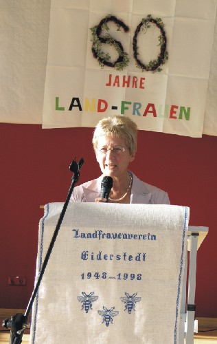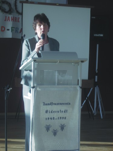 Mit rund 150 LandFrauen und Gästen wurde das nunmehr 60 jährige Bestehen dieser Vereinigung der LandFrauen Eiderstedts feierlich in der Mensa des Gymnasiums in St. Peter-Ording begangen und die vielseitige und wertvolle Arbeit der LandFrauen mit vielen freundlichen und anerkennenden Worten geehrt. Auch wurden Urkunden und hübsche Präsente übergeben, die viel Freude bereiteten.