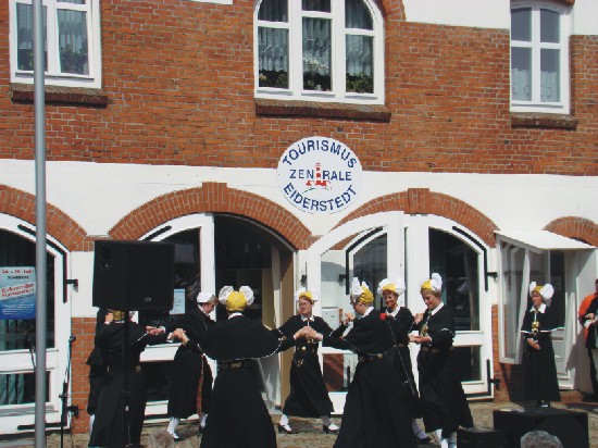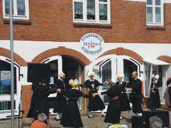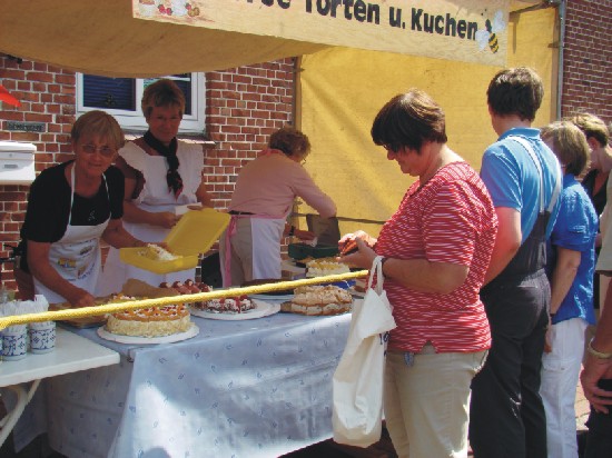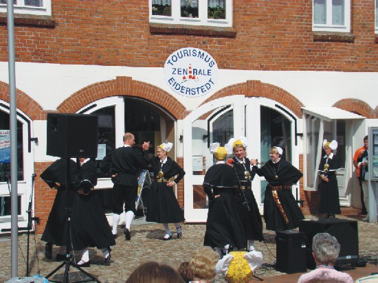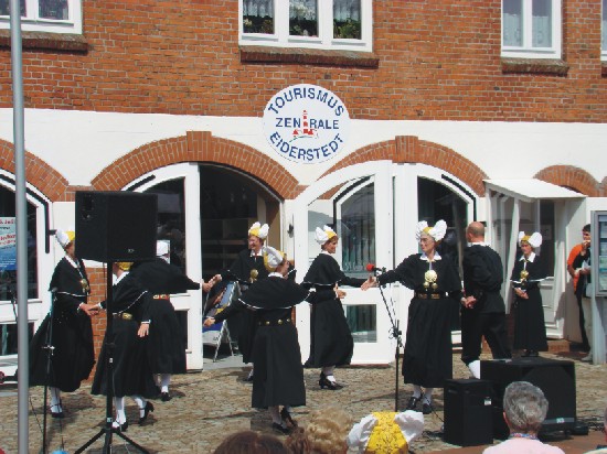 Neben den begehrten Köstlichkeiten der Landfrauen, gab es Darbietungen der Jagdhorn-Bläser Eiderstedt, der Trachten-Tanzgruppe Eiderstedt und des Landfrauen-Chors Eiderstedt.